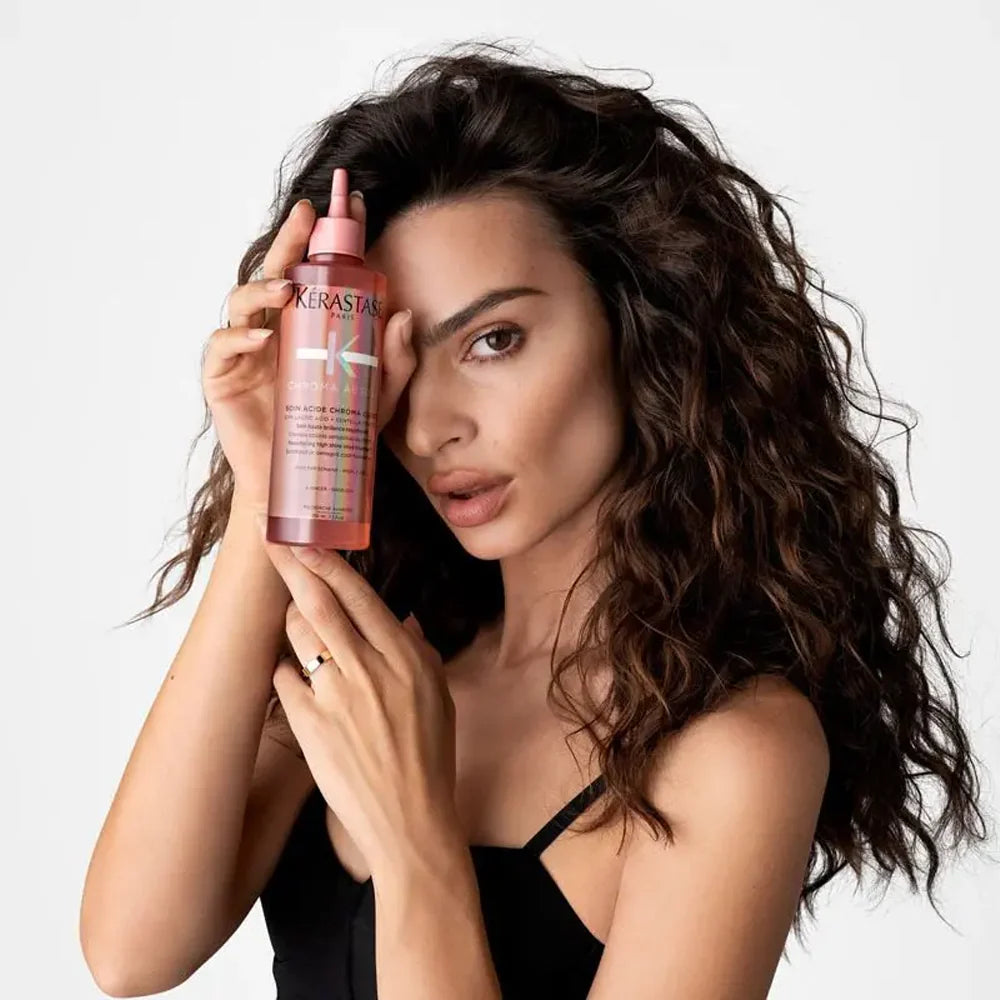 This high shine treatment wraps the fibre in a lightweight formula creating a smooth and sleek surface for intense softness and shine. Enriched with Latic Acid, known to trap dulling minerals, this treatment boosts colour vibrancy.